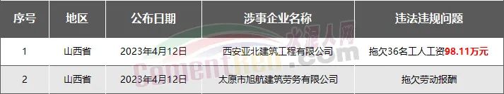 山西省2家房企、建企欠薪被通报或处罚,涉及金额98.11万元