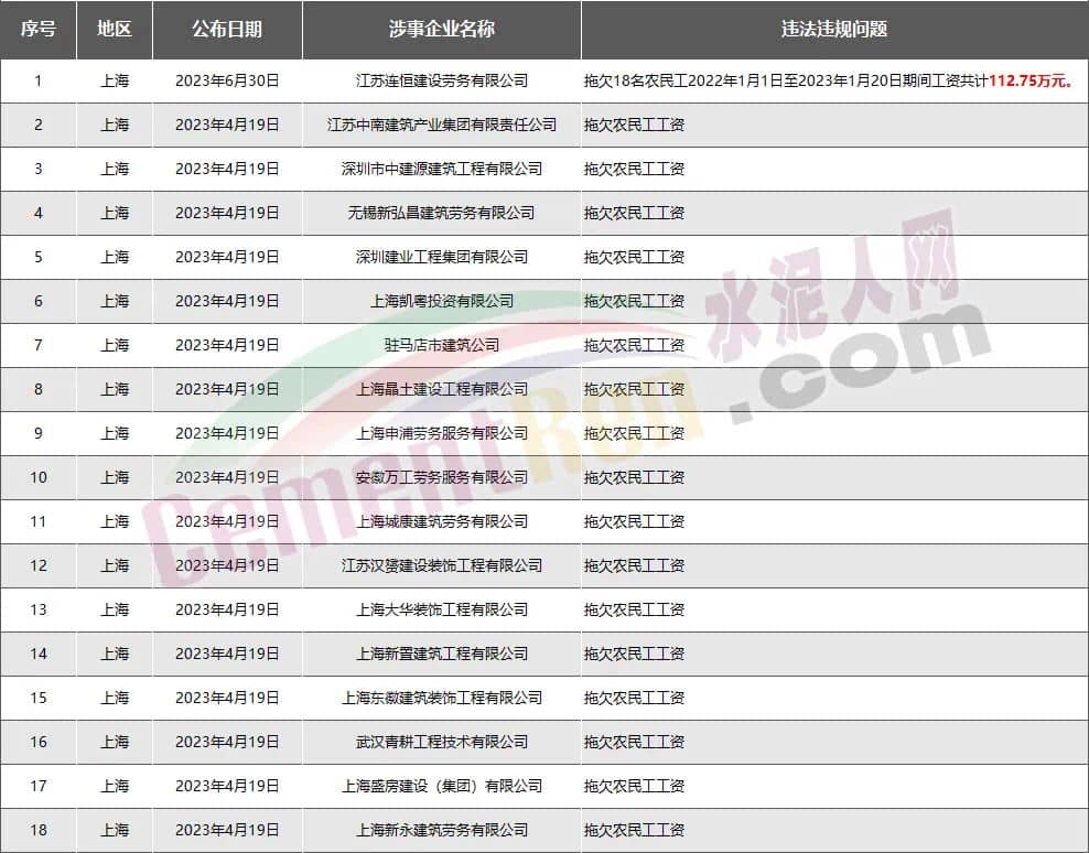 上海市18家房企、建企欠薪被通报或处罚,涉及金额112.75万元