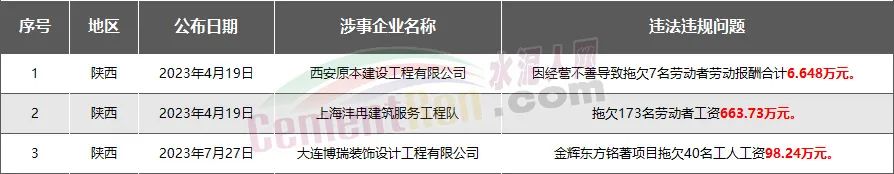 陕西省3家房企、建企欠薪被通报或处罚,涉及金额768.61万元