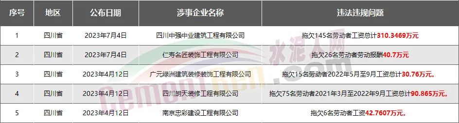 四川省5家房企、建企欠薪被通报或处罚,涉及金额515.42万元
