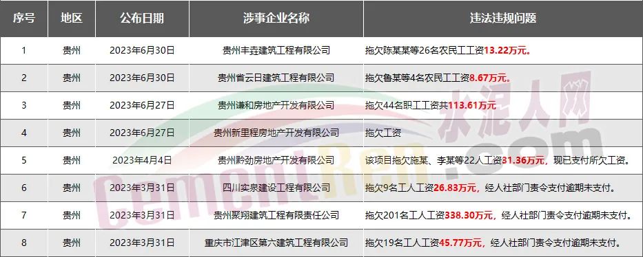 贵州省8家房企、建企欠薪被通报或处罚,涉及金额577.76万元