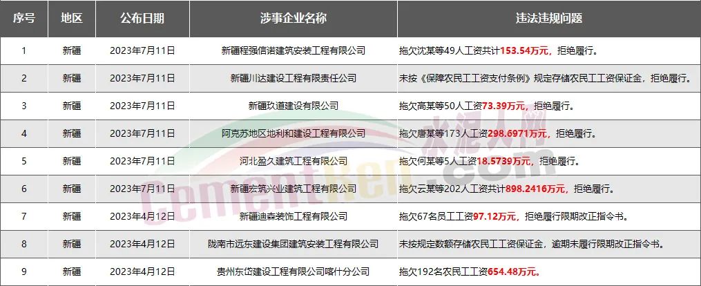 新疆9家房企、建企欠薪被通报或处罚,涉及金额2194万元