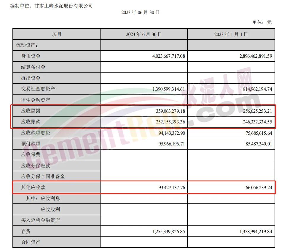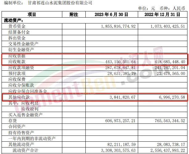 2023年上半年祁连山应收账款4.43亿,其他应收款384.2万。