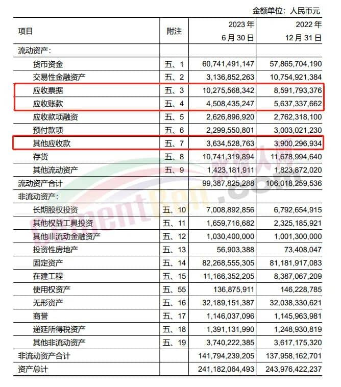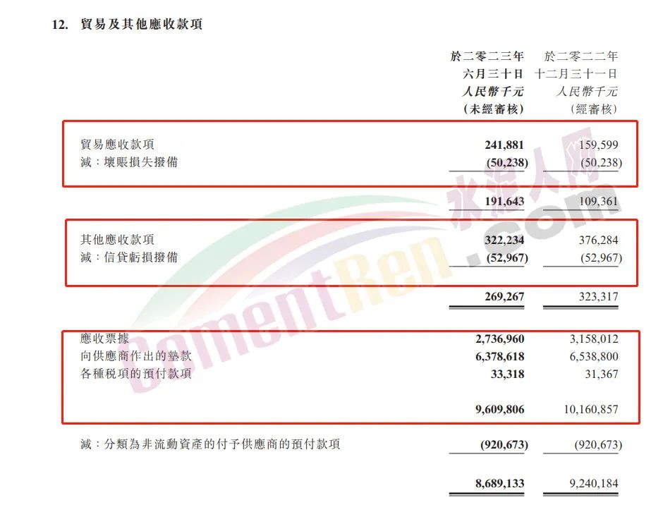 2023年上半年天瑞水泥应收账款2.42亿,应收票据96.1亿,其他应收款3.22亿。