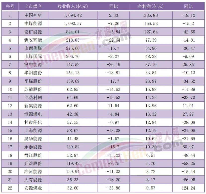 煤炭行业22家已发布半年报的企业中,仅有2家营收同比增长、5家净利润同比增长。包括还未发布半年报的陕西煤业在内,几大煤炭行业龙头业绩普遍出现下滑。