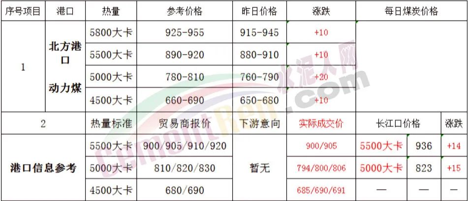 9月14日,国家统计局数据显示,流通领域4500大卡到5800大卡煤炭报价已全面调涨,其中5000大卡煤炭环比上涨47元/吨,涨幅6.6%,为今年1月以来的最大涨幅。