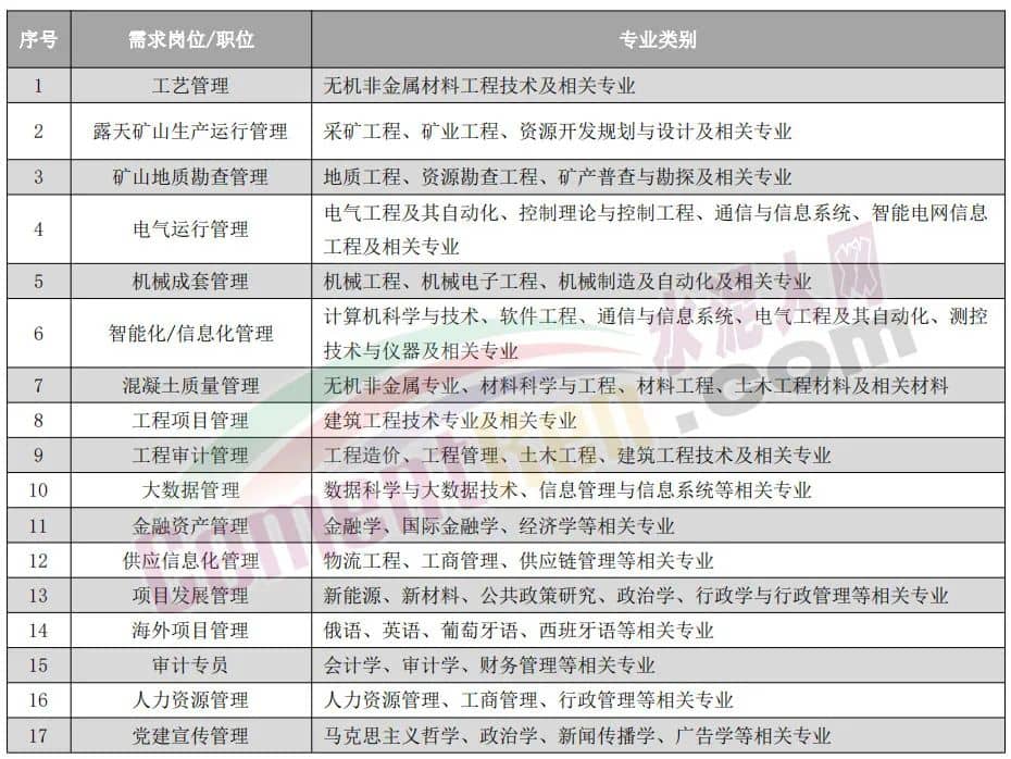 日前,安徽省大中专毕业生就业指导中心官网发布了《海螺水泥2024年秋季校园招聘简章》招聘岗位包含工艺管理、露天矿山生产运行管理、矿山地质勘查管理、电气运行管理、机械成套管理、智能化/信息化管理、混凝土质量管理、金融资产管理、供应信息化管理、项目发展管理、海外项目管理等多个岗位。