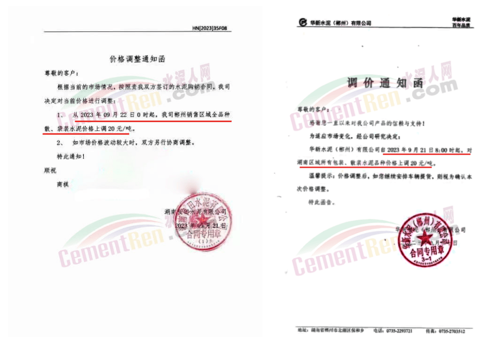 9月20日,海螺水泥旗下祁阳海螺、双峰海螺,红狮水泥旗下永州红狮、宁远红狮、衡阳红狮、永州莲花水泥、康达(湖南)水泥等10余家水泥企业通知上调水泥价格20元/吨。