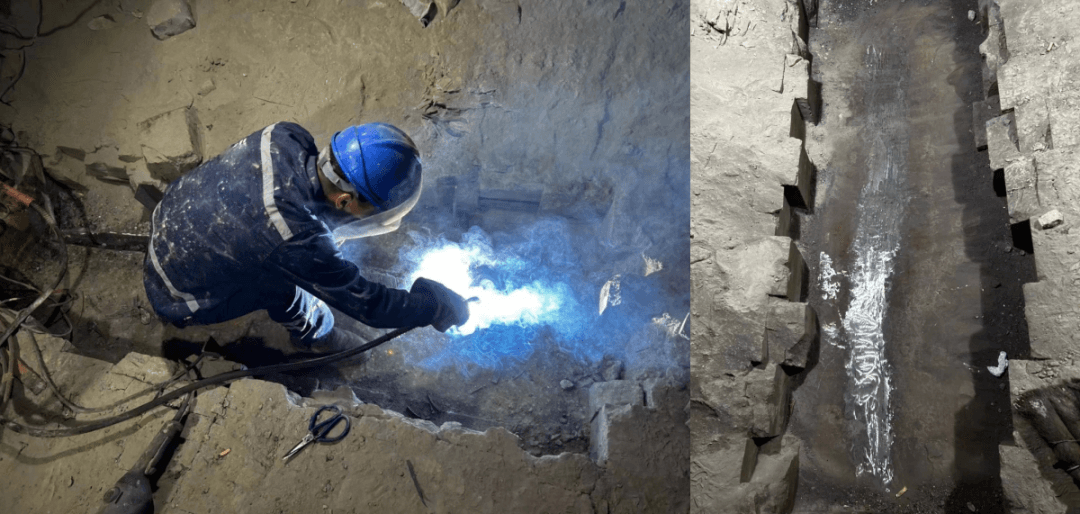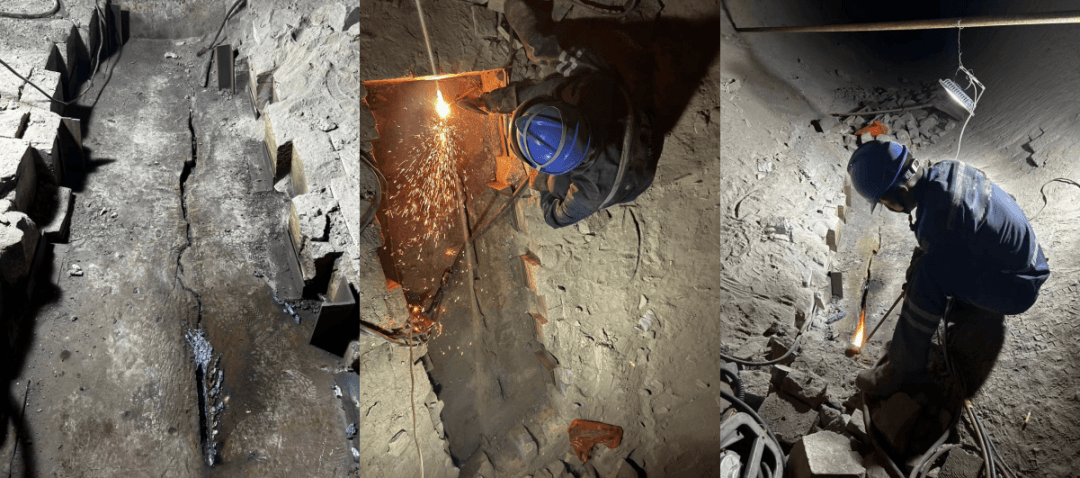 图:回转窑二档轮带后筒体裂纹抢修图片