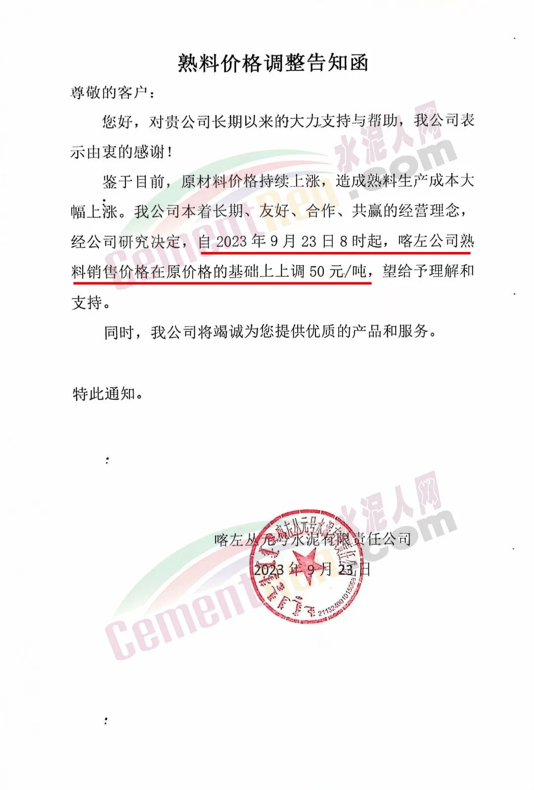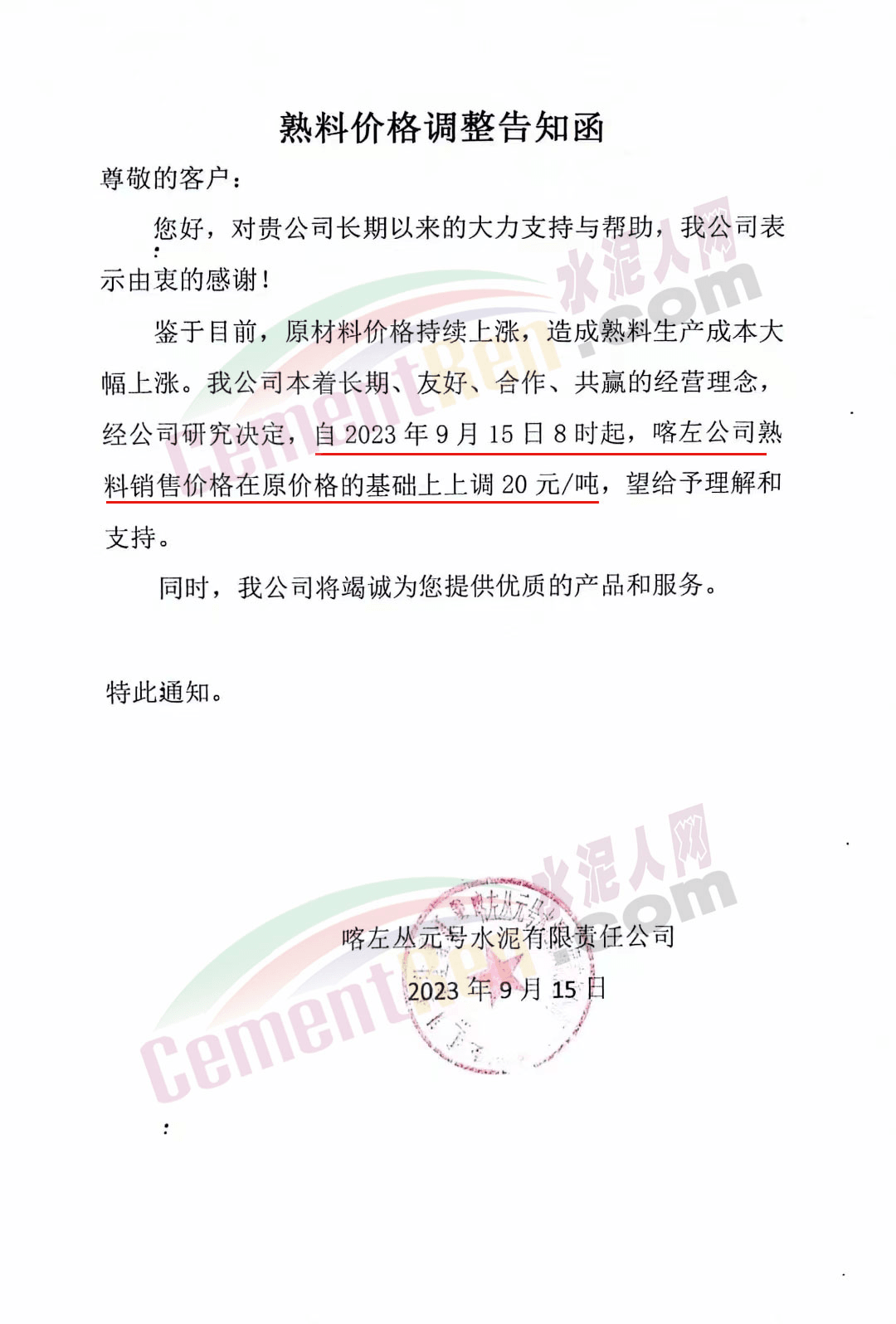 9月28日,山水水泥旗下辽宁喀佐丛元号水泥第四次通知上调熟料报价20元/吨。9月内4连涨,累计上调100元/吨。