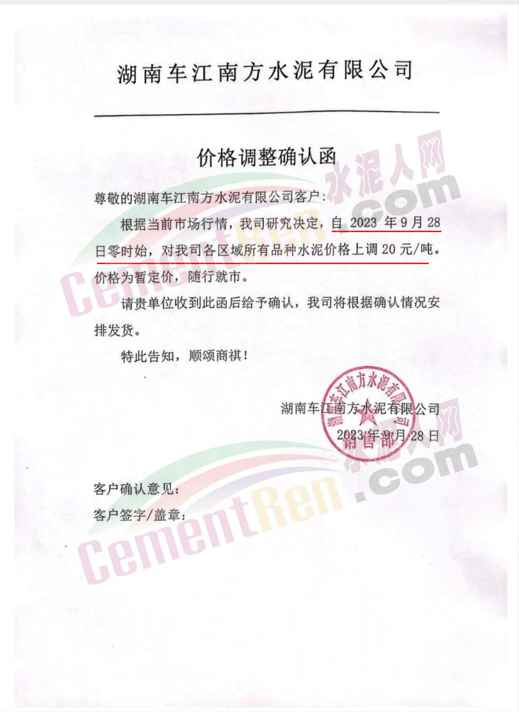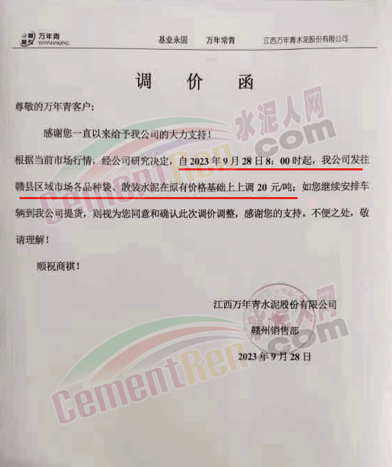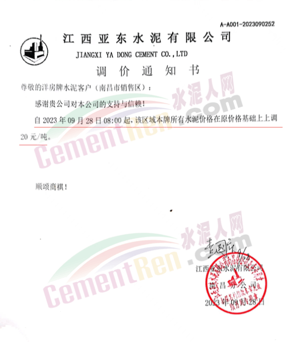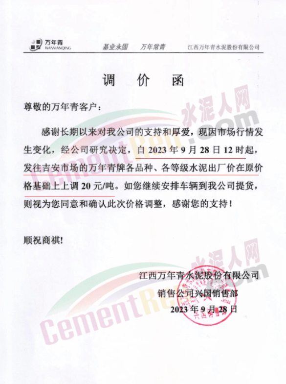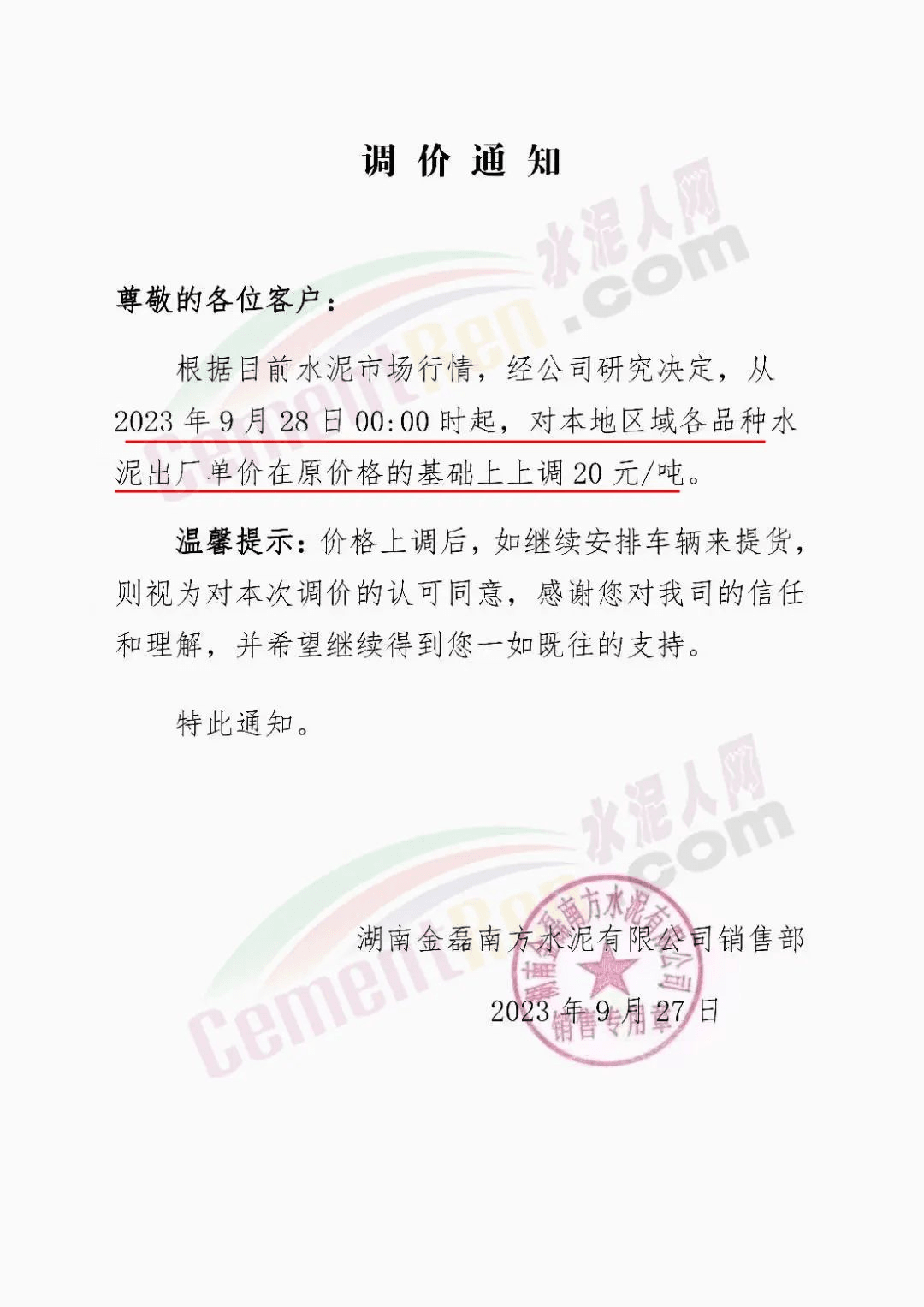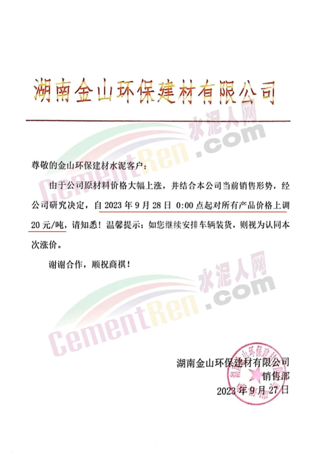 28日,江西区域主要品牌水泥企业通知,各品种水泥价格上调20元/吨。经销商反馈称,这轮涨价落实情况还要看海螺、南方能不能跟进,调价落实大概率是到十一长假之后了。