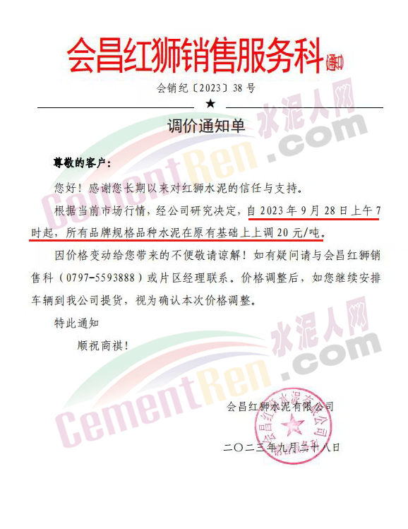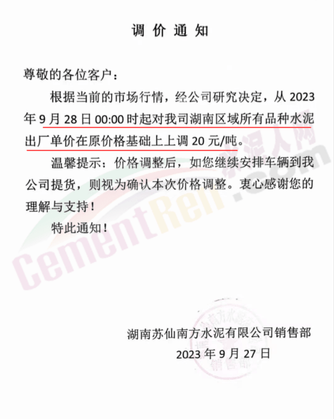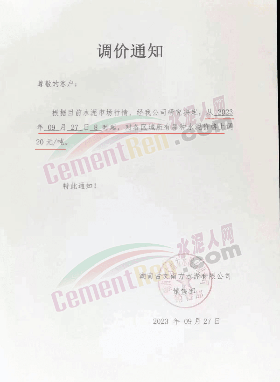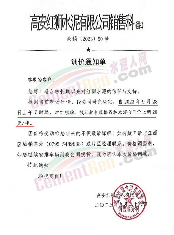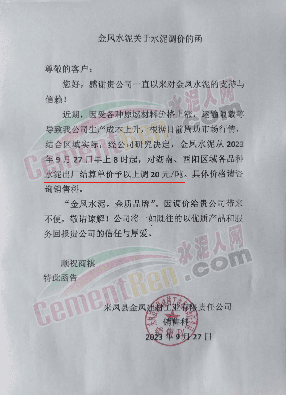 28日,江西区域主要品牌水泥企业通知,各品种水泥价格上调20元/吨。经销商反馈称,这轮涨价落实情况还要看海螺、南方能不能跟进,调价落实大概率是到十一长假之后了。