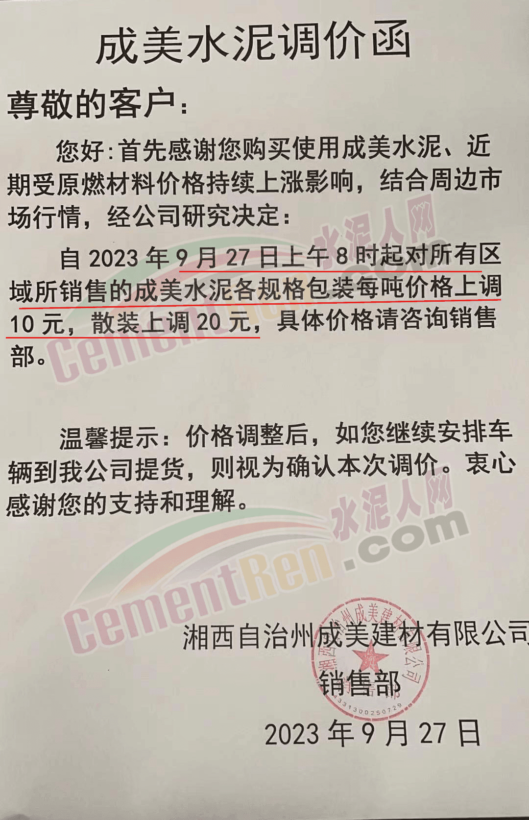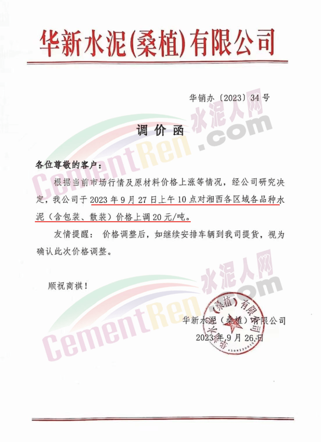 苏北、皖北等多区域主要品牌水泥价格将在10月1日前后跟进上调。