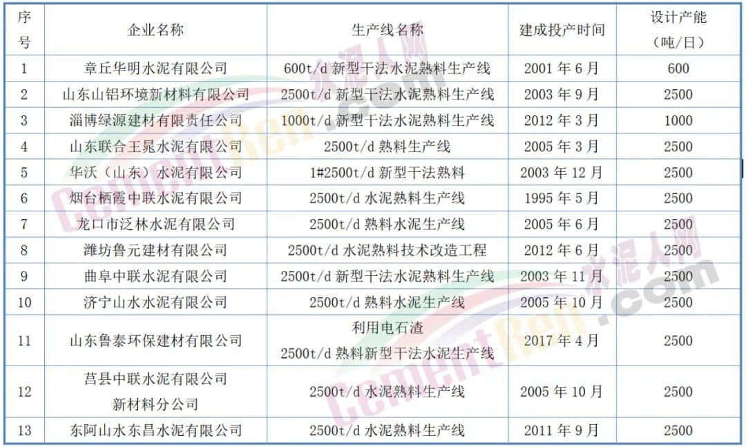 据了解,截至2022年12月31日山东省内共有85条熟料生产线,其中2500t/d及以下生产线13条,包含山东鲁泰环保建材有限公司一条利用电石渣2500t/d熟料新型干法水泥生产线。