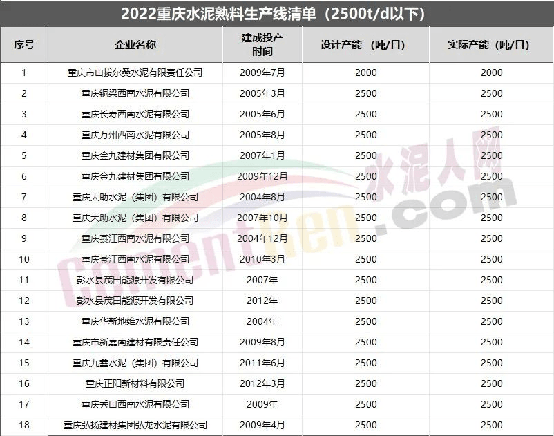 重庆市2025年底前退出单条生产线2500t/d及以下的普通水泥熟料产能