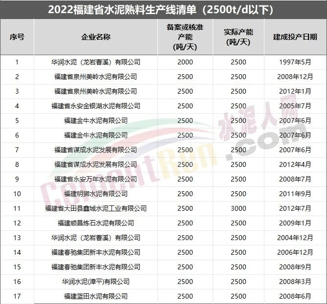 相关业内分析人士表示,“十四五”期间无论是从水泥熟料单位产品综合能耗水平还是从设备技术指标、区域产能集中度、产能过剩程度来考量,对2500t/d及以下熟料生产线都是“生死”考验。从已经发布2022年熟料生产线清单的24个省市地区来看,除特种水泥生产线外在产2500t/d及以下熟料生产线共600多条。