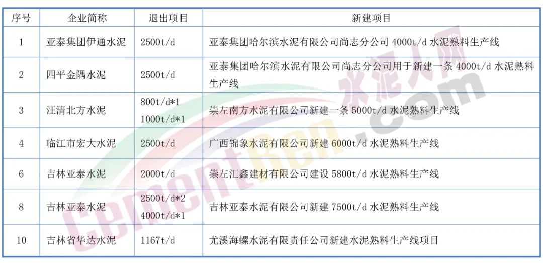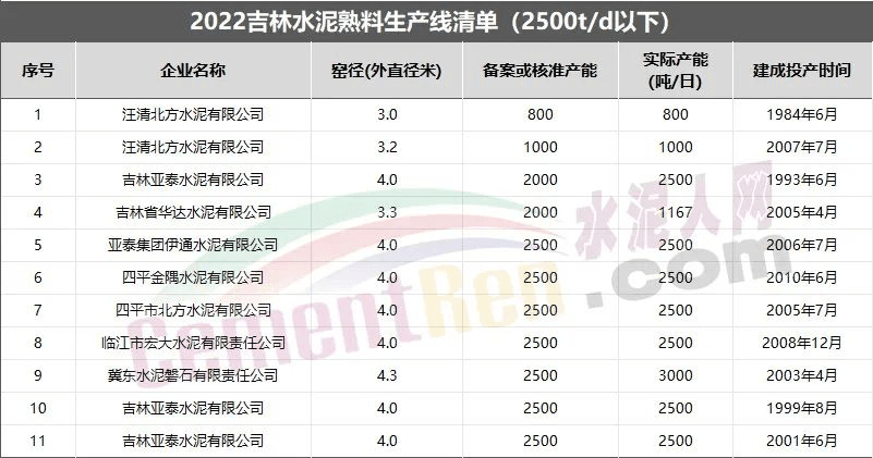 另据了解,今年4月中旬,吉林省工信厅公布水泥熟料生产线清单显示,9条2500t/d及以下水泥熟料生产线已通过产能置换出让,退出项目将随着新建线投产逐步退出。