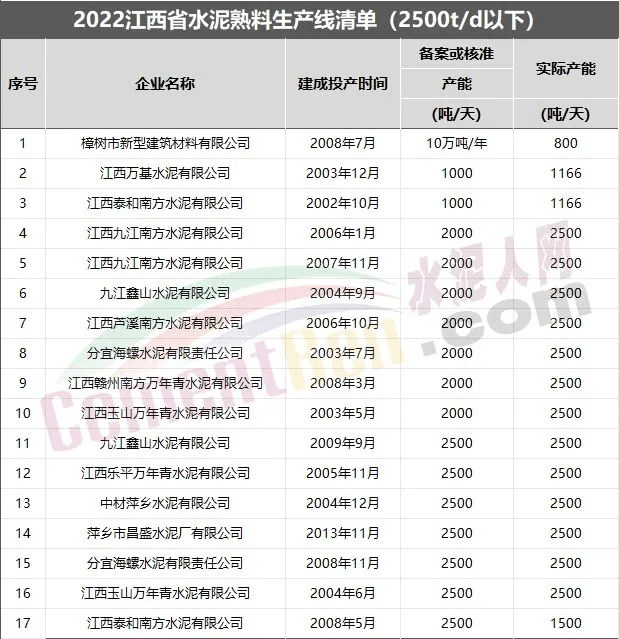 江西省2025年底前淘汰2000t/d及产能利用率较低的地区的2500t/d生产线