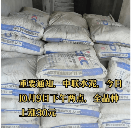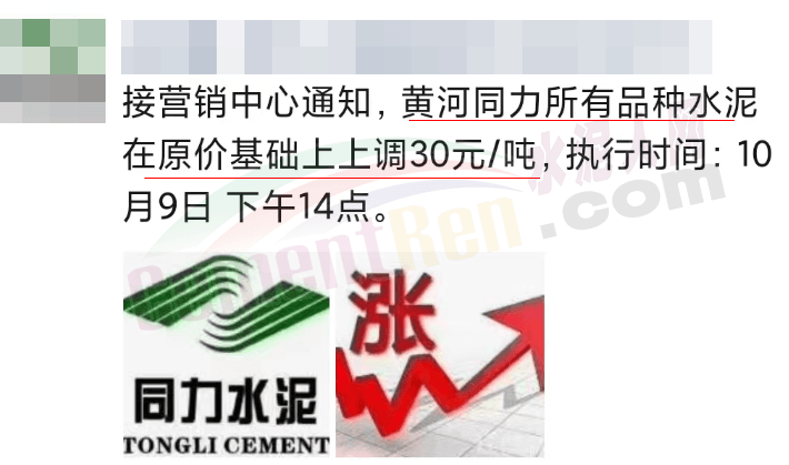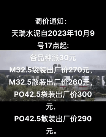 同日,贵州昊龙胜境建材有限责任公司通知,由于原材料价格持续上涨,水泥生产成本不断增加,经公司研究决定自2023年10月10日0时起对公司“胜境”牌袋、散装所有型号水泥在原单价基础上上调30元/吨。