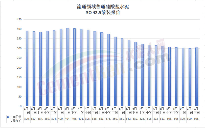 从流通领域水泥价格走势可见,进入9月下旬,水泥价格似有触底反弹之势,在跌跌不休中出现小幅回升。