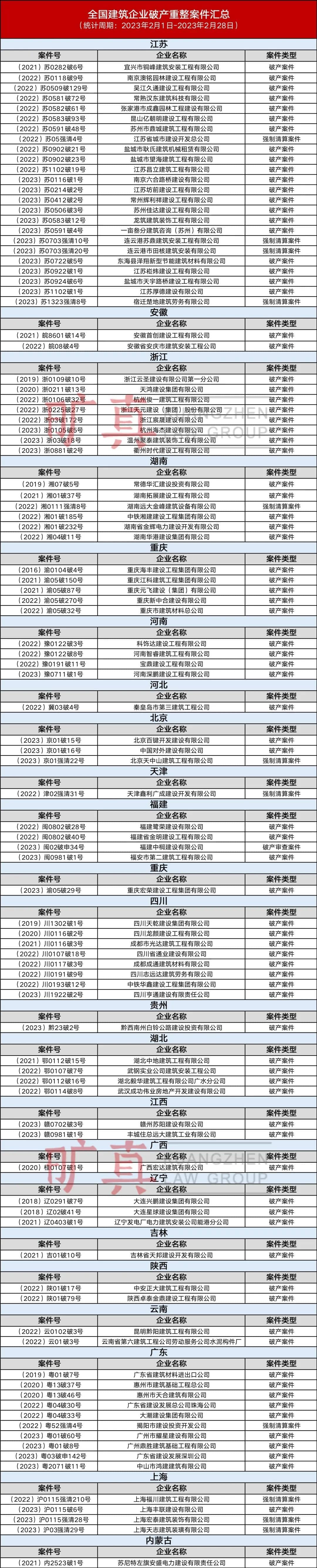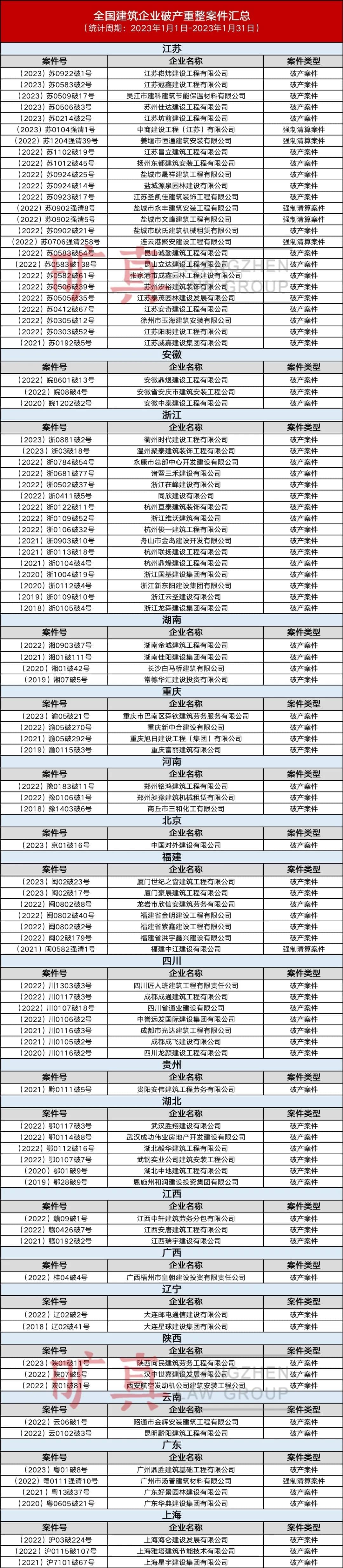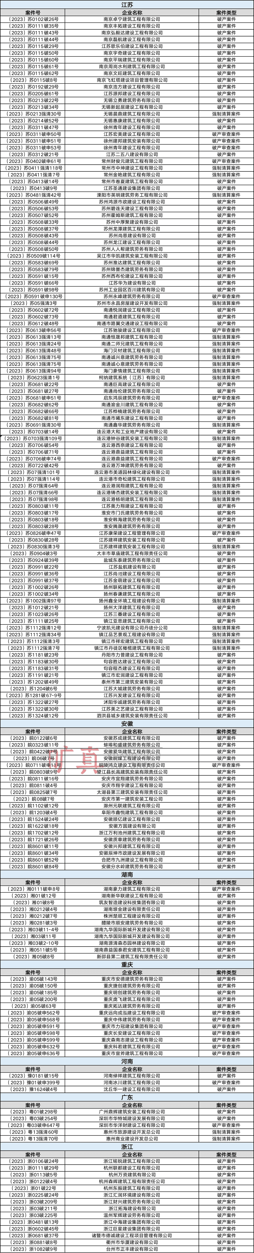 从2023年1-8月全国建筑企业破产重整案件汇总名单(见附件)可见,占比较大的仍是江苏省。一位项目经理介绍称,老家江苏,一个县就有好几家特级总承包。而今这些“特级”也都已经入列破产名单了,这些破产公司的员工绝大多数都回乡了。