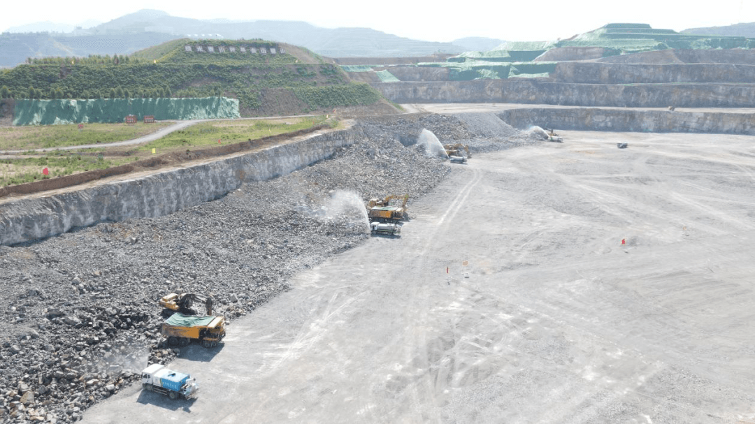 铜川项目坚持绿色发展,在矿山开采过程中,依照“边采边治”理念,在保质保量完成生产任务同时,积极推进矿山标准化建设和形象提升工作,持续做好矿山扬尘治理“4个100%”工作,将采场平整度控制在±20cm,矿山生态修复效果显著,于2021年纳入全国绿色矿山名录,基本实现了宝鉴山矿山环境生态化,资源利用高效化。同时,采厂利用湿法作业抑制扬尘,保持良好采场环境,打好“蓝天保卫战”,治理效果显著。