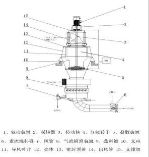 (5)独特设计的分级流场和立式分级轮,可以将产品粒度进行分级,降低了粉体与分级轮的摩擦,大大地延长了分级轮的使用寿命。