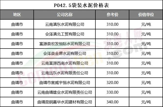 备注:以上数据来源于水泥人网“e价格”,仅供参考,如有差池,请以实际数据为准。