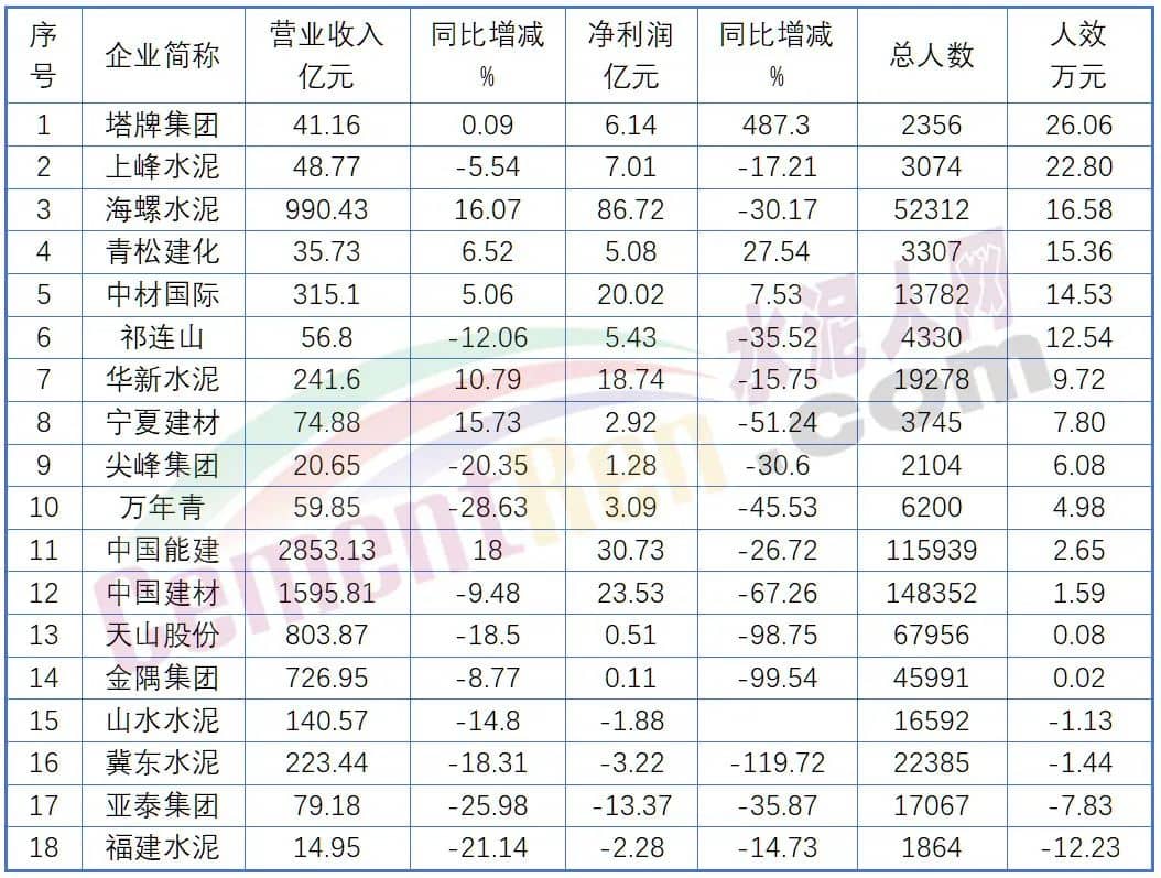 上市公司“人效”大排名,塔牌水泥人均26.06万元,拔得头筹