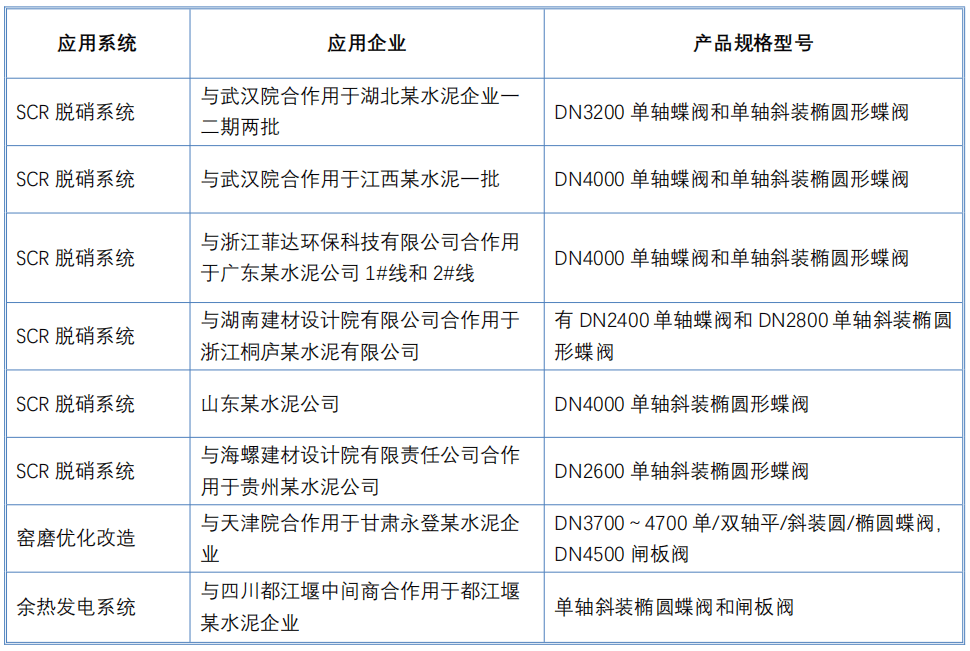 电动蝶阀和闸板阀均为耐高温软密封“零泄漏”,做功扎实。闸板阀底部带空气炮或压缩空气吹扫装置,能解决闸板因灰结块闸不到底的问题。蝶阀密封面带空气炮或压缩空气吹扫装置,确保蝶板闭合前密封面清洁,保证密封性。目前这两种阀门已在水泥行业华润水泥、南方水泥、中联水泥、海螺水泥、祁连山、亚东水泥、拉法基水泥等知名企业有应用。