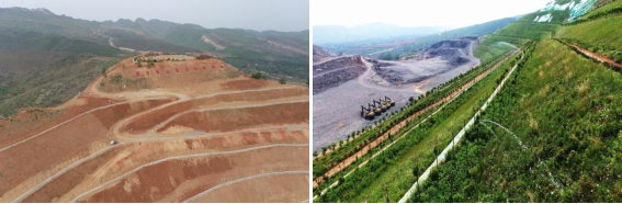 本项目是中国建筑材料工业建设西安工程有限公司按照国家绿色矿山建设规范,组织开展的首例“边开采、边复垦”的标杆工程,在非金属矿山、水泥矿山在产矿山中,首次将生态修复、土地复垦、景观建设融为一体,改变了在产矿山脏乱差的传统认识,重新塑造矿区新形象,践行绿色青山就是金山银山的理念。