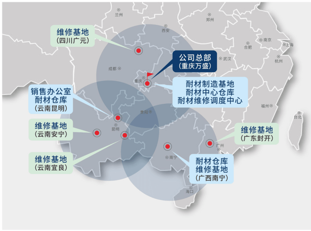 据水泥人网了解,重庆良友总部设在重庆万盛,同时设立耐材制造基地、耐材中心仓库和耐材维修调度中心。且同步在四川广元、云南宜良、安宁、广西南宁、广东封开分别建立了维修基地。在云南昆明、广西南宁设立了耐材仓库。