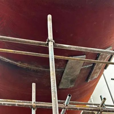 此前有窑筒体修复工程师向水泥人网反馈,1个月内修复的6条窑都是在二档轮带到大齿圈之间的相同区域出现裂纹。其中一家企业窑筒体运行的12年间,曾更换两段窑筒体。因在更换的过程中未考虑挡砖圈的位置,导致挡砖圈移至了温度较高、热应力变形最大的烧成带附近,在第二次更换后不久便在挡砖圈附近出现了裂纹。