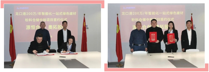 近日,AOTUO奥拓股份成功中标龙口港年产200万/年智能化一站式绿色建材粉料仓储中转项目,合同签约仪式在奥拓股份杭州总部举行。项目投资方龙口市源恒合创建材有限公司董事长郑永润与奥拓股份董事长季贵波共同出席了签约仪式!