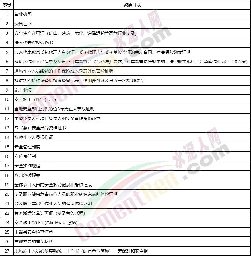 外包外委施工单位资质材料清单