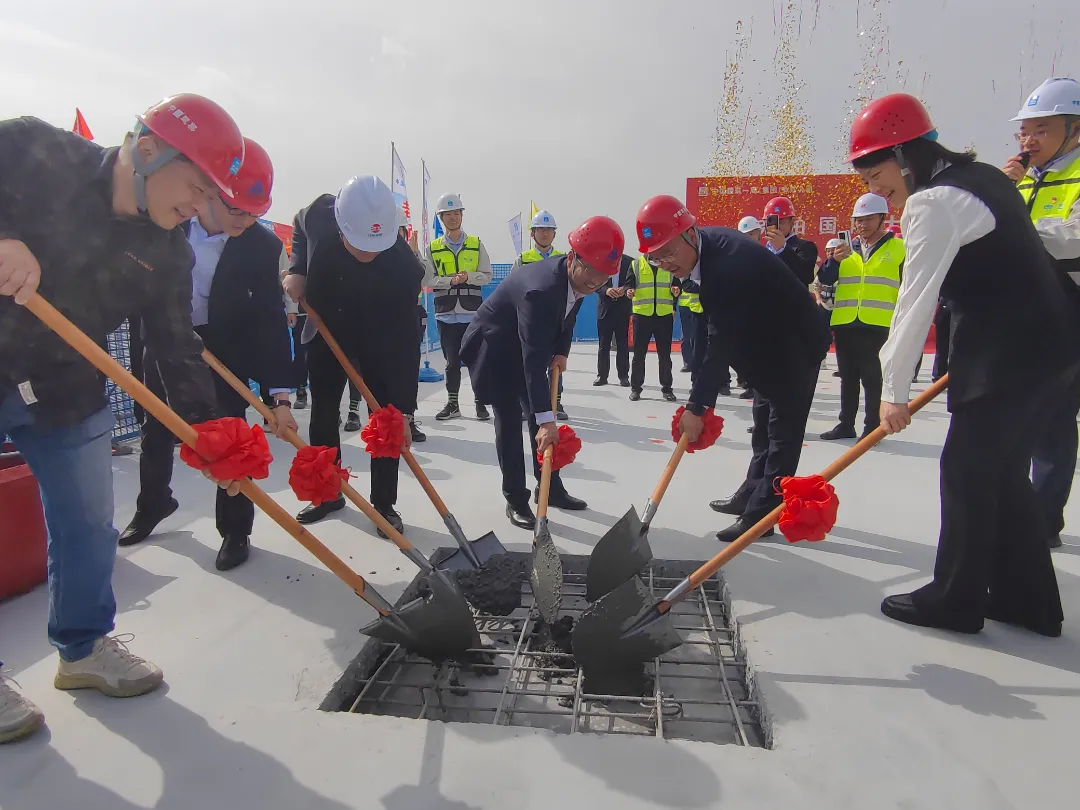 在公司、建设单位、监理单位、设计单位领导共同浇筑最后一锹混凝土后,宣布项目正式封顶。