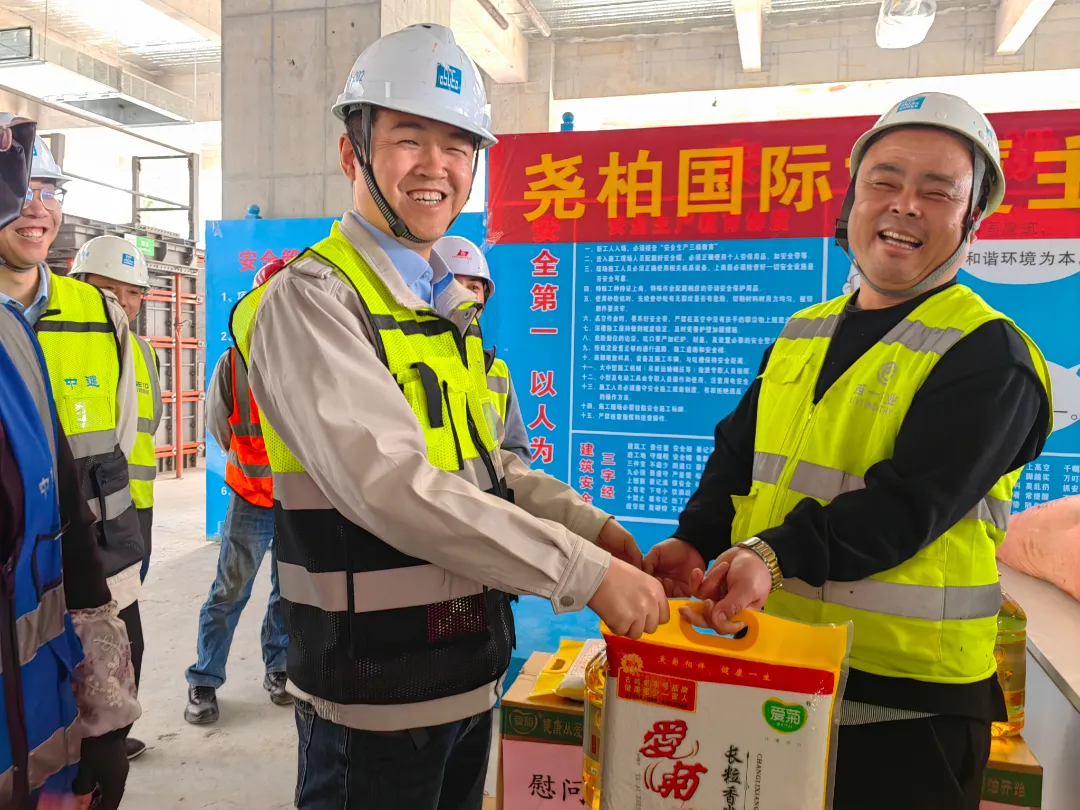 活动中,项目精心准备了慰问品,特别感谢一线工友们的艰苦奋斗和辛勤付出,并向奋战在施工一线的全体建设者致以崇高的敬意和诚挚的问候。