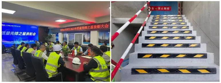 项目严格执行样板等五项制度,坚守质量底线,狠抓精细化管理。事前进行交底预控避免质量隐患,事中跟踪指导化解质量问题,事后复盘总结提升质量水平,对触碰质量红线行为进行严肃处罚,同时开展“质量先锋之星活动”,对优秀班组和质量先锋之星进行正向激励,保证施工全过程符合质量标准。