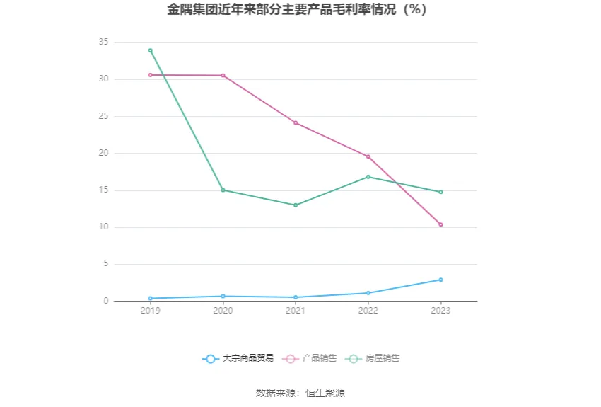 分产品看,大宗商品贸易、产品销售、房屋销售2023年毛利率分别为2.88%、10.35%、14.76%。
