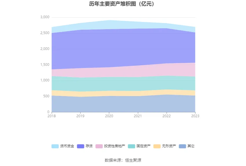 资产重大变化方面,截至2023年年末,公司存货较上年末减少13.83%,占公司总资产比重下降3.96个百分点;投资性房地产较上年末增加12.83%,占公司总资产比重上升2.44个百分点;固定资产较上年末增加0.98%,占公司总资产比重上升0.84个百分点;货币资金较上年末增加8.35%,占公司总资产比重上升0.75个百分点。