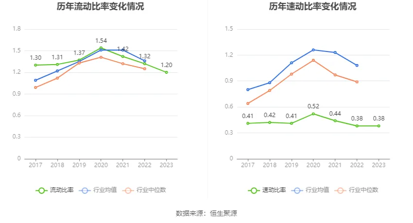 2023年,公司流动比率为1.20,速动比率为0.38。
