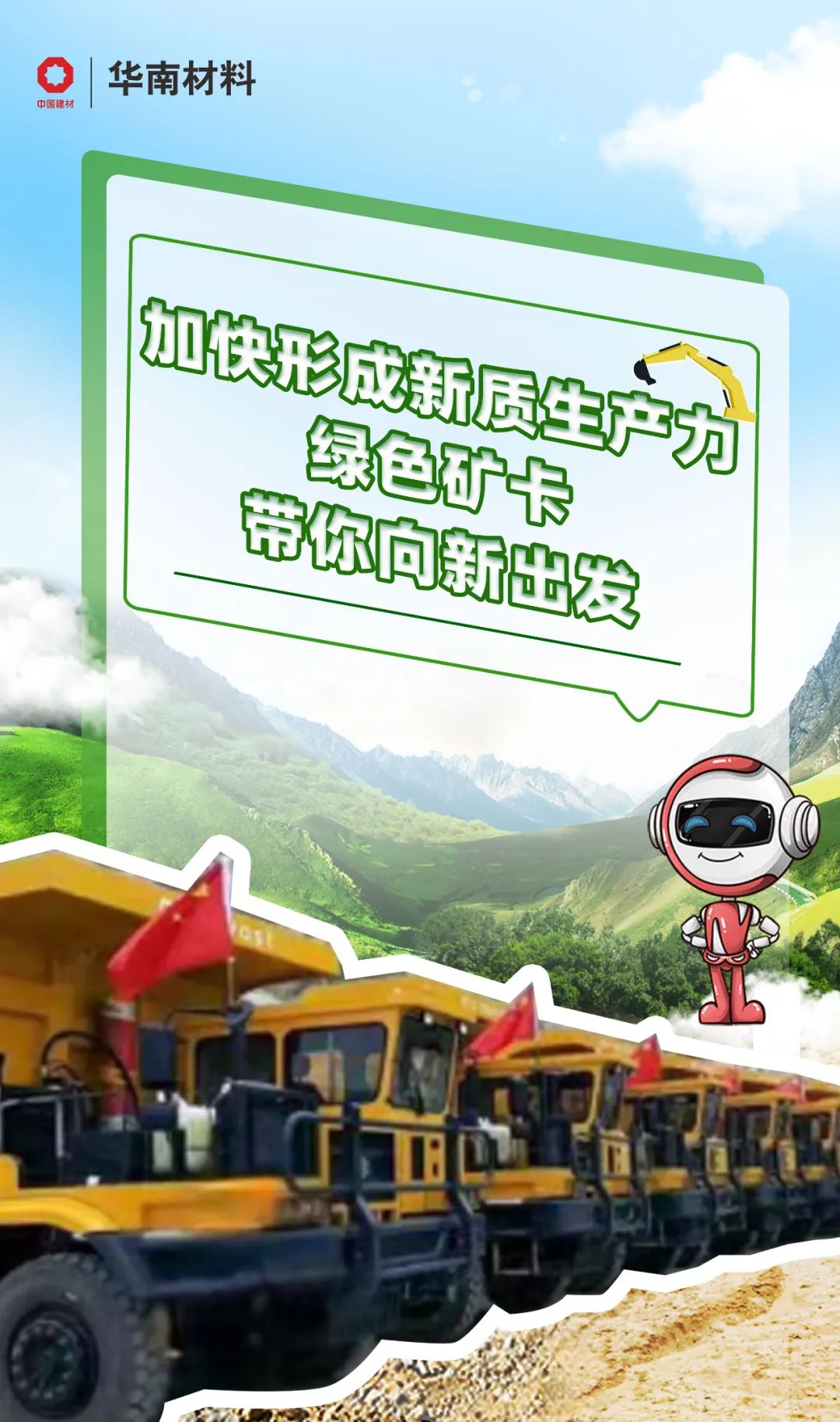 华南材料把绿色环保智能理念融入矿山建设中,采用新能源电动矿卡,破解节能降耗“密码”。