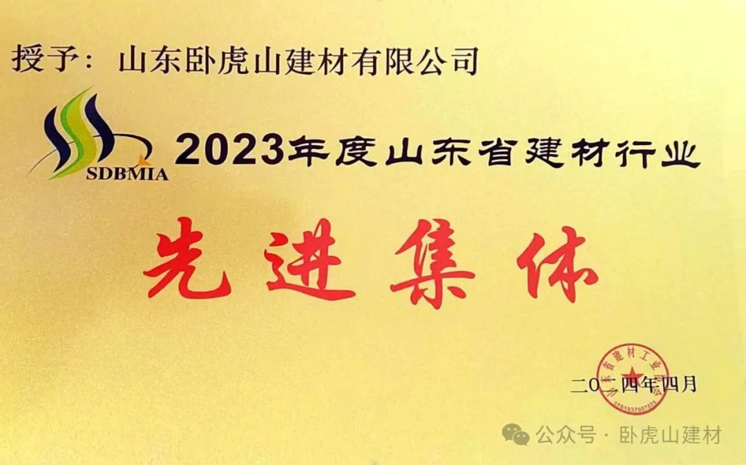 “2023年度山东省建材行业先进集体”荣誉的获得,表明山东卧虎山建材有限公司在管理、生产、技术创新、市场表现等多个方面表现优异,对推动山东省建材行业的高质量发展做出了积极贡献。