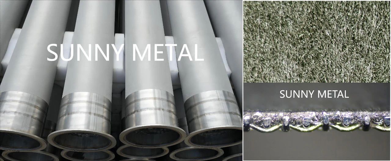 金属粉毡由金属粉末和不锈钢丝网烧结而成,丝网镶嵌在粉末中间,起支撑连接作用。