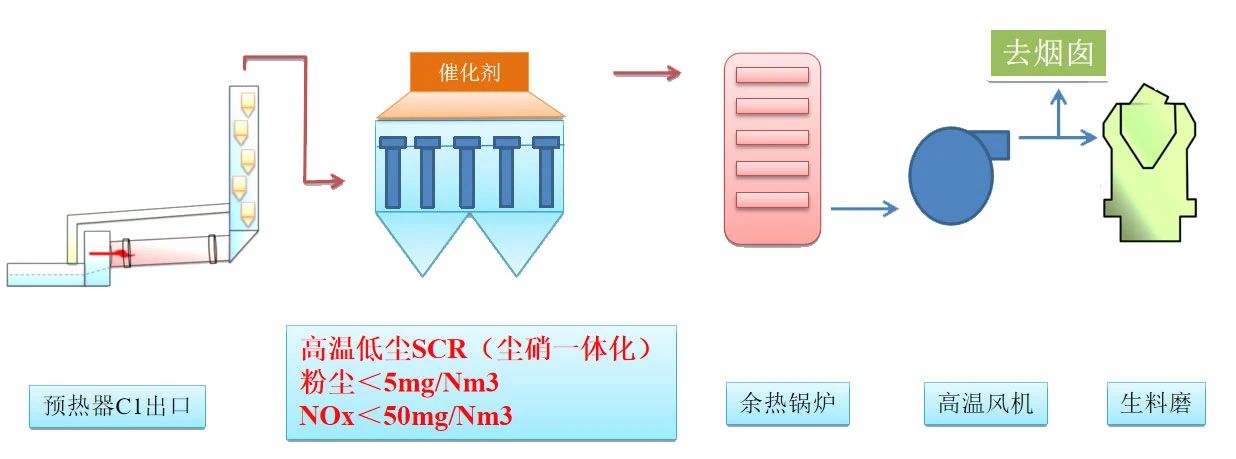 根据以上原因,金属滤袋在水泥窑中的脱硝工艺路线推荐如下:
