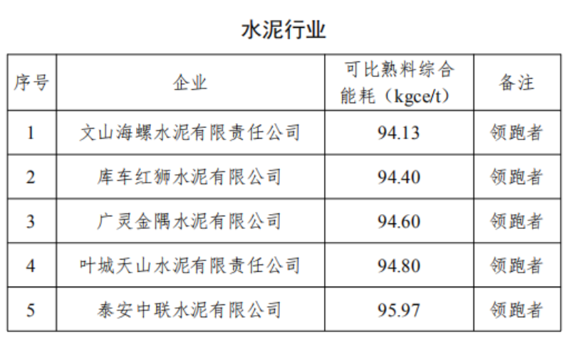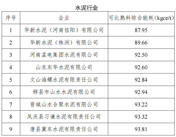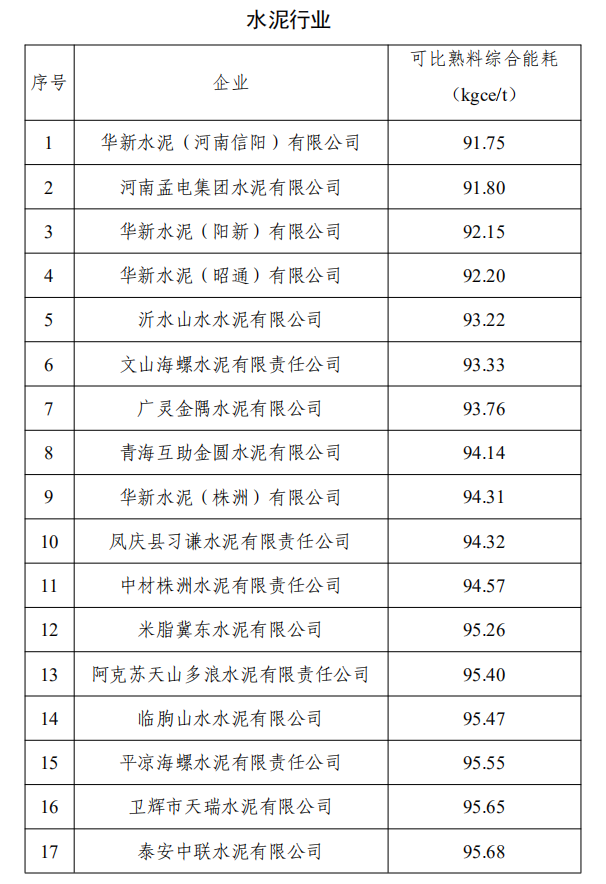 少量替代燃料,吴忠赛马新型建材有限公司熟料单位产品综合能耗为89.66kgce/t;冀东海天水泥闻喜有限责任公司熟料单位产品综合能耗为90.23kgce/t。