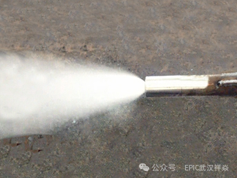 EPIC空气雾化技术主要靠气泡爆破来雾化,其雾化机理是利用流体力学两相流理论,将低压雾化介质(蒸汽或压缩空气)注入到低压油里面,在一混合腔体内混合,形成油包气的特定流态——气泡流,利用气泡的产生、运动、变形,且至在枪头出口处形成气泡内外压力差,通过其压差使气泡涨裂来雾化的,破坏的是燃油的表面张力,所以能耗小,雾化颗粒度细(一般可达40μm左右),而且尺寸分布均匀,分布指数N>2。