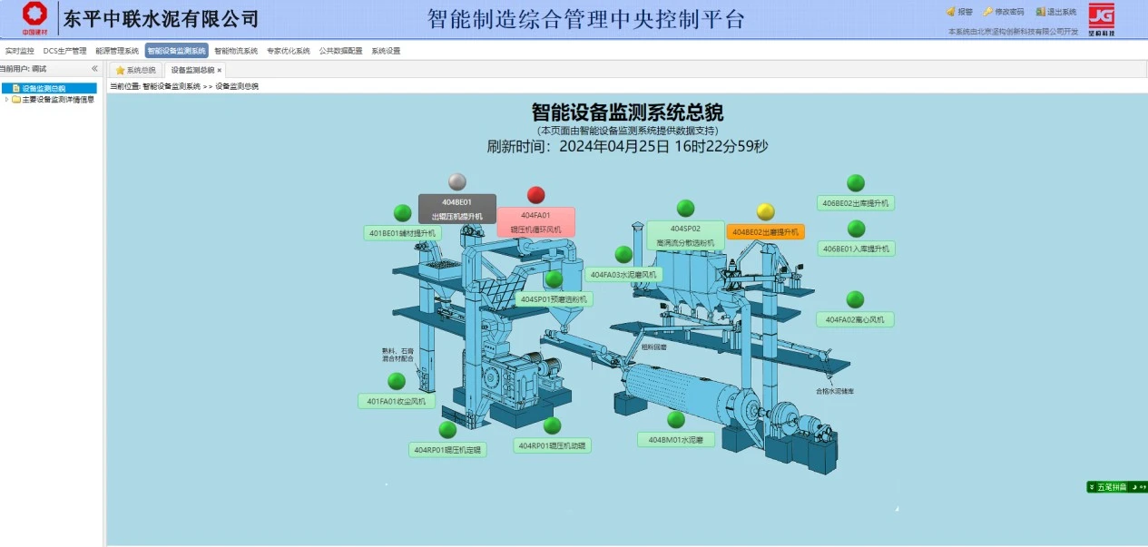 临沂中联先后投资引进国外激光粒度分析仪和生料在线分析仪,实现水泥和熟料生产质量在线监测控制,同时,开发水泥磨房无人值守系统、总降变电站无人值守系统、石灰石预均化堆取机无人值守系统和DCS专家优化系统等。在此技术基础上,与济南大学合作开发智能化数据信息平台,链接大数据,整合设备预知预检系统、环保在线检测系统等,打造信息化数据平台,实现了水泥、商混、骨料、余热发电、光伏发电、危废协同处置为一体的循环经济产业链。