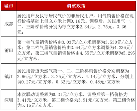 已有超过130个市县,推动居民燃气价格上涨