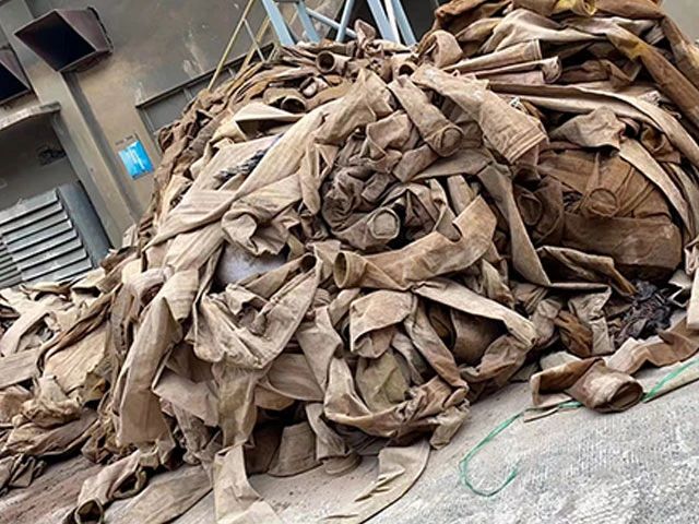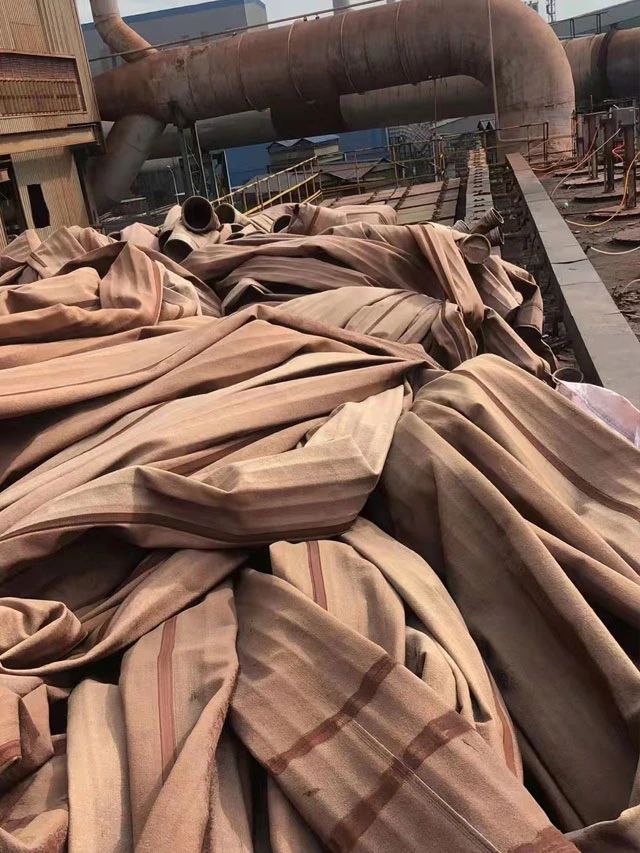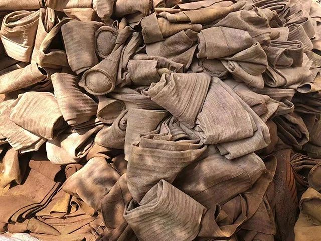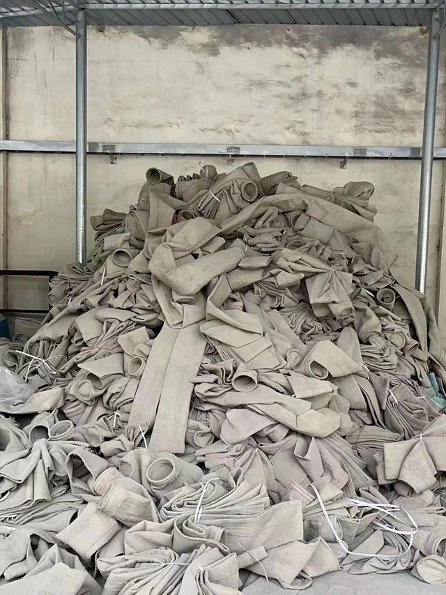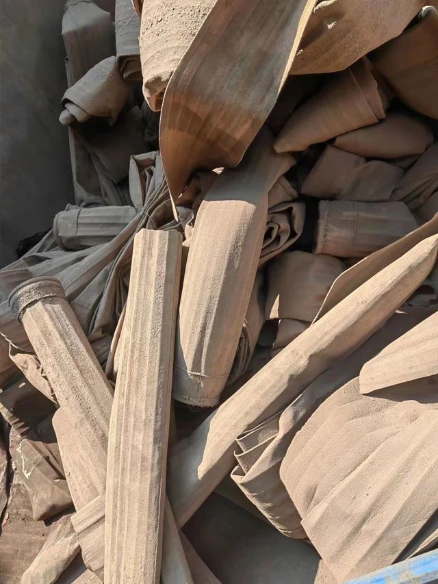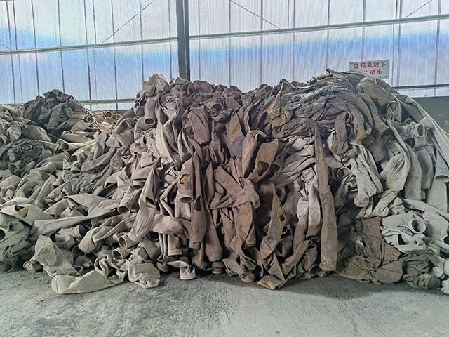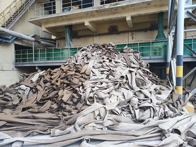水泥厂、电厂、钢厂换下来的废旧滤袋,按类别进行整理和存放,以便于更好地回收利用,变现换钱。